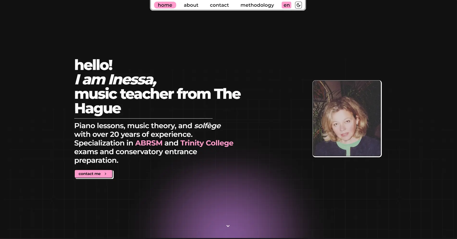 To help my aunt, Inessa Levkina, connect with more students for her piano and music theory lessons, I built a modern website using Next.js. This project involved not only showcasing her expertise but also implementing best practices for SEO to improve her online presence. It was a great opportunity to apply my web development skills while creating a user-friendly and aesthetically pleasing site.
